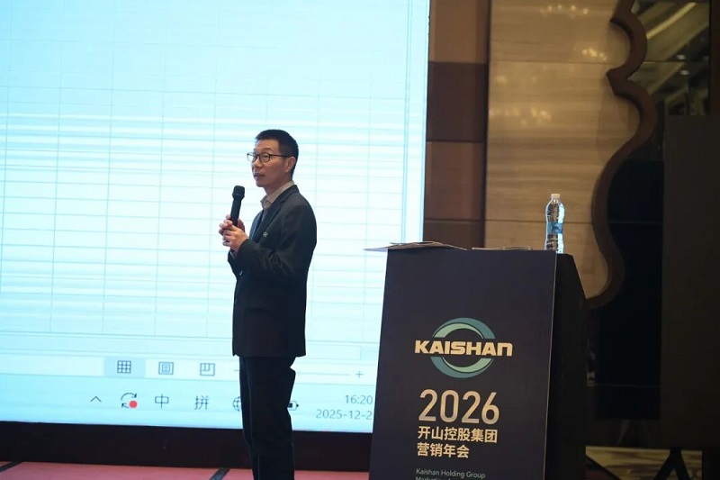 本屆大會按慣例,為34家優秀經銷單位頒發了獎牌。與以往不同的是,其中十家經銷單位因為連續五年獲評“最佳經銷單位”,獲頒特制銀質獎章。宜昌博力開山機電設備有限公司和重慶開山一機節能設備有限公司因為2025年度銷售/訂單突破億元,首次獲頒金質獎章。其中宜昌博力已連續三年銷售過億元,主要銷售開山重工的全液壓鉆車機系列高端產品。重慶開山一機則銷售包括干式無油螺桿空壓機、大功率螺桿空壓機、變節距干式真空泵、離心式壓縮機等高端產品。公司祝賀并感謝這兩家公司在幫助開山拓展高端市場取得的突出成就。曹董號召全體經銷單位以他們為榜樣,冀望有更多的銷售超億元經銷單位涌現。